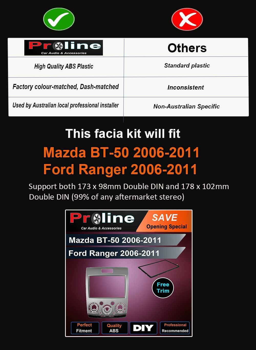 Mazda BT50 BT-50 Ford Ranger PJ PK car radio Double 2 DIN FACIA KIT fascia dash